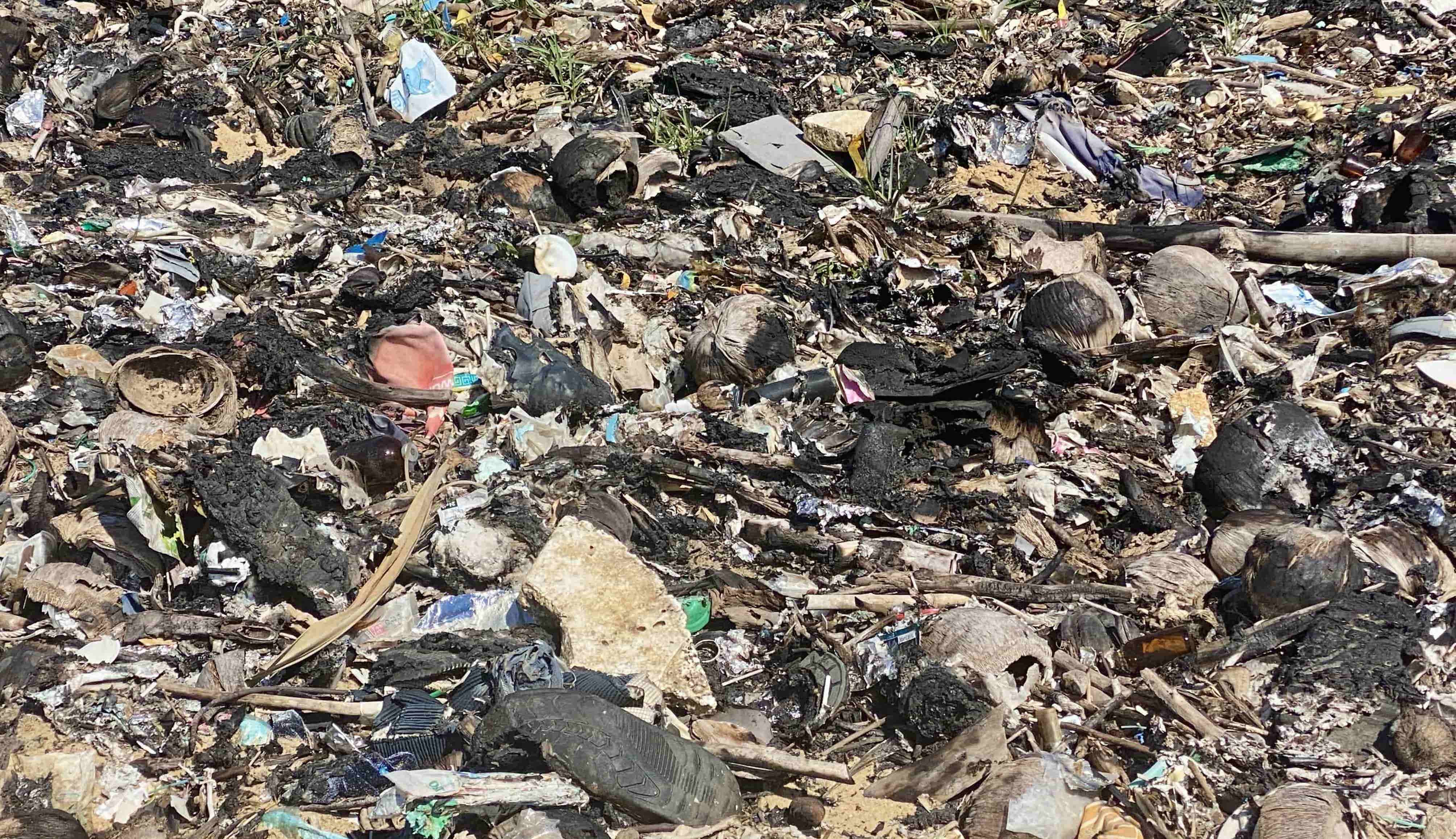 Rác thải tại khu vực này không được thu gom nhưng lại bị đốt cháy tại chỗ, bốc mùi khét lẹt.