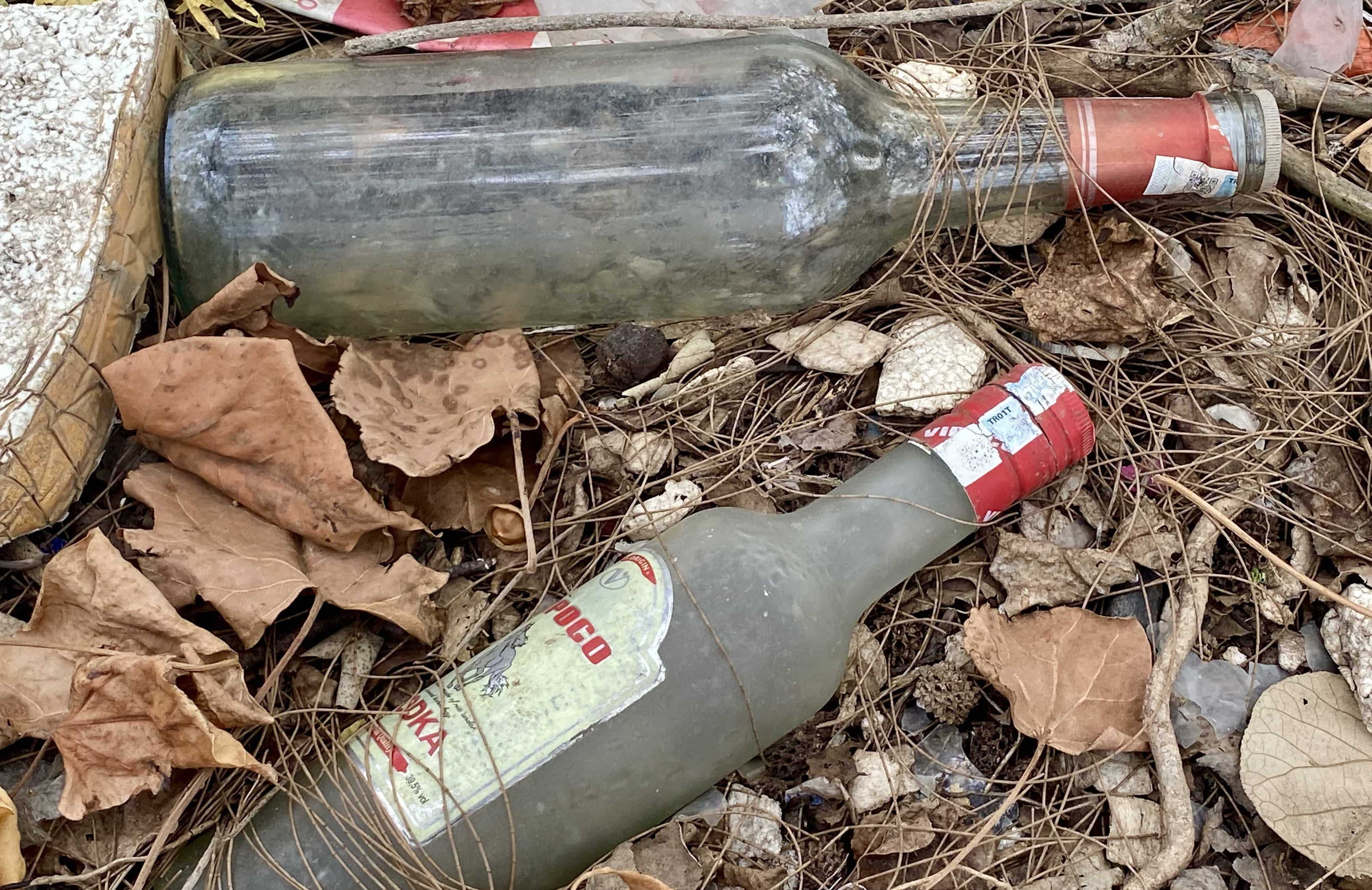 …Các loại chai thủy tinh nằm chất đống tại đây.