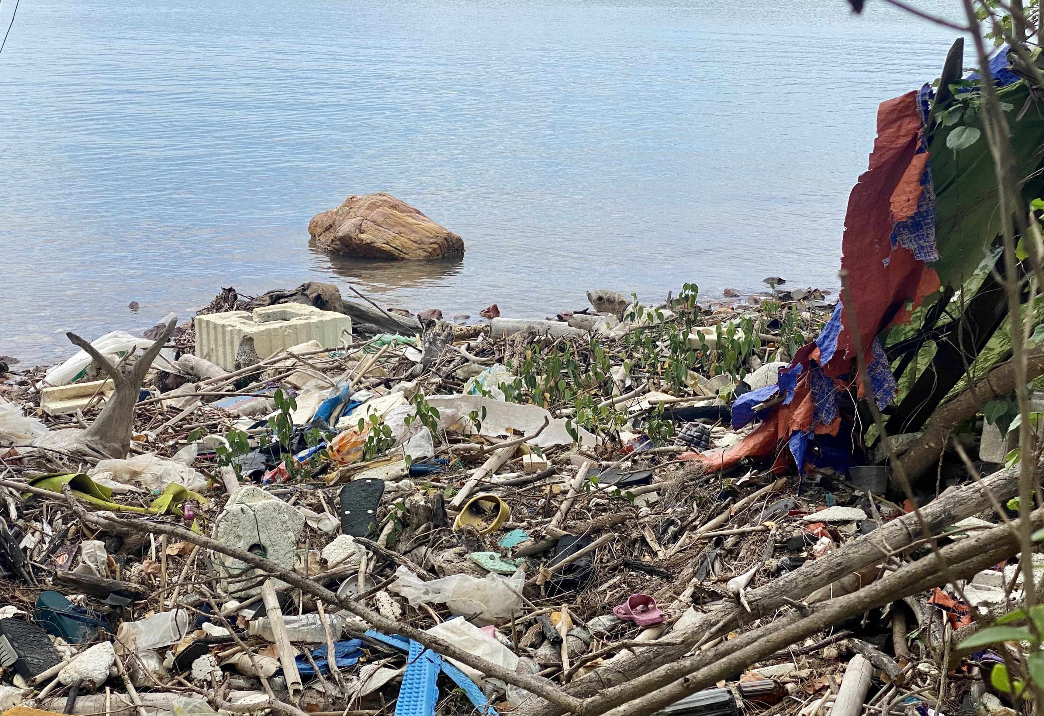 Thế nhưng thời gian gần đây, hàng km dọc bờ đầm Thị Nại có hàng tấn rác thải “bủa vây”.