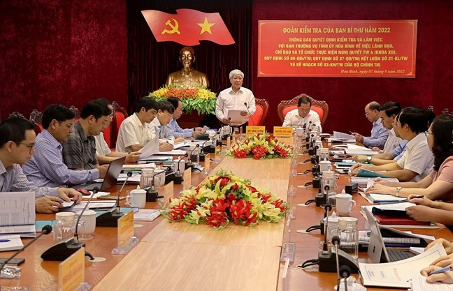 Ngày 7/9, Đoàn kiểm tra của Ban Bí thư do Bí thư Trung ương Đảng, Chủ tịch Ủy ban Trung ương Mặt trận Tổ quốc Việt Nam Đỗ Văn Chiến làm Trưởng đoàn đã làm việc với Ban Thường vụ Tỉnh ủy Hòa Bình.