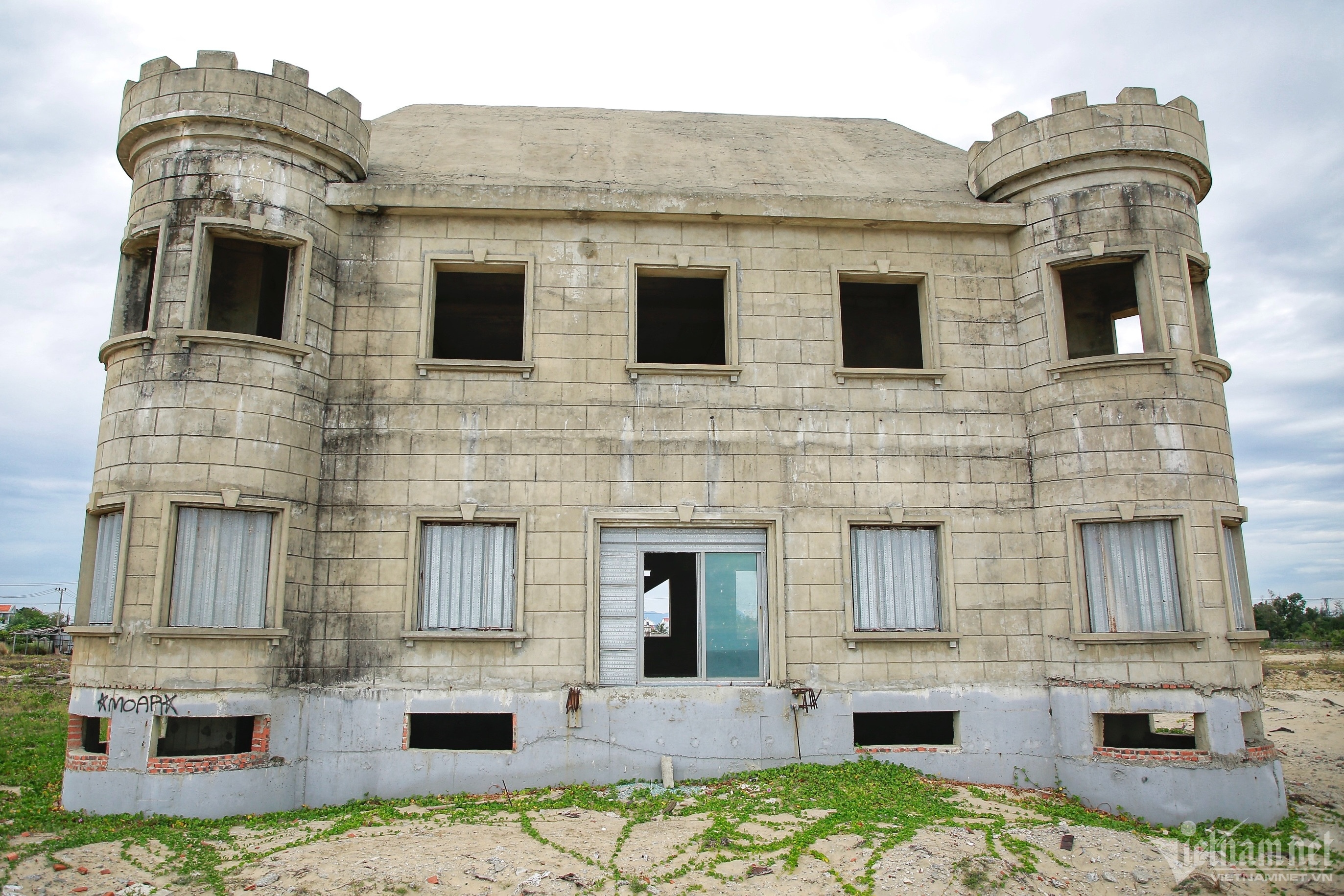 Ghi nhận của VietNamNet vào ngày 31/7, công trình được bao quanh 3 phía bởi hàng rào bê tông và tôn. Phía còn lại giáp biển không được che chắn. Cỏ cây mọc phía ngoài um tùm.