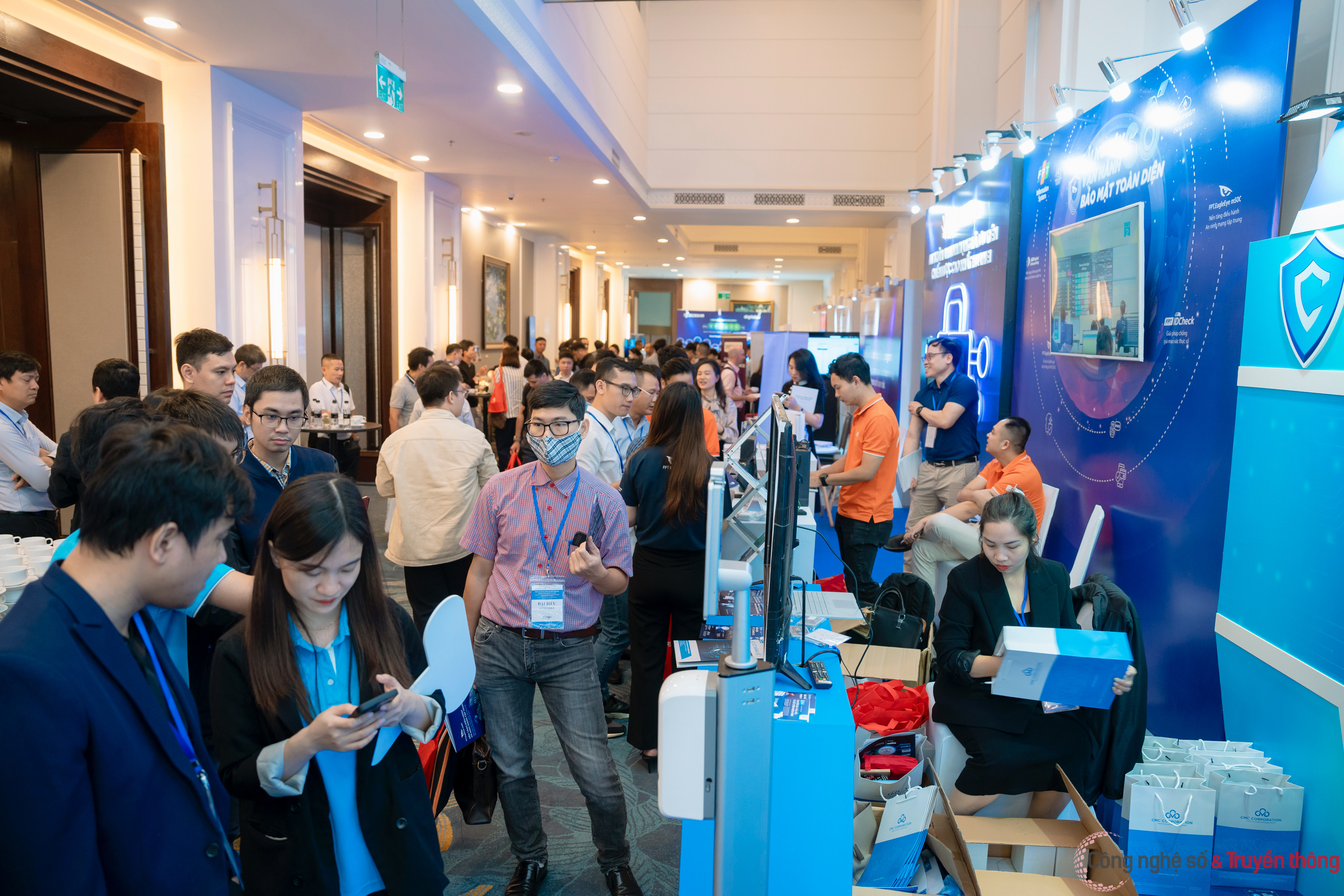 Bên cạnh các phiên hội thảo, khu vực triển lãm với hơn 30 gian hàng giới thiệu sản phẩm, công nghệ ATTT của các công ty công nghệ Việt Nam và thế giới là một trong những khu vực hấp dẫn tại sự kiện. Theo thông tin từ Ban tổ chức, 34 công ty công nghệ trong và ngoài nước đã tham gia sự kiện này.
