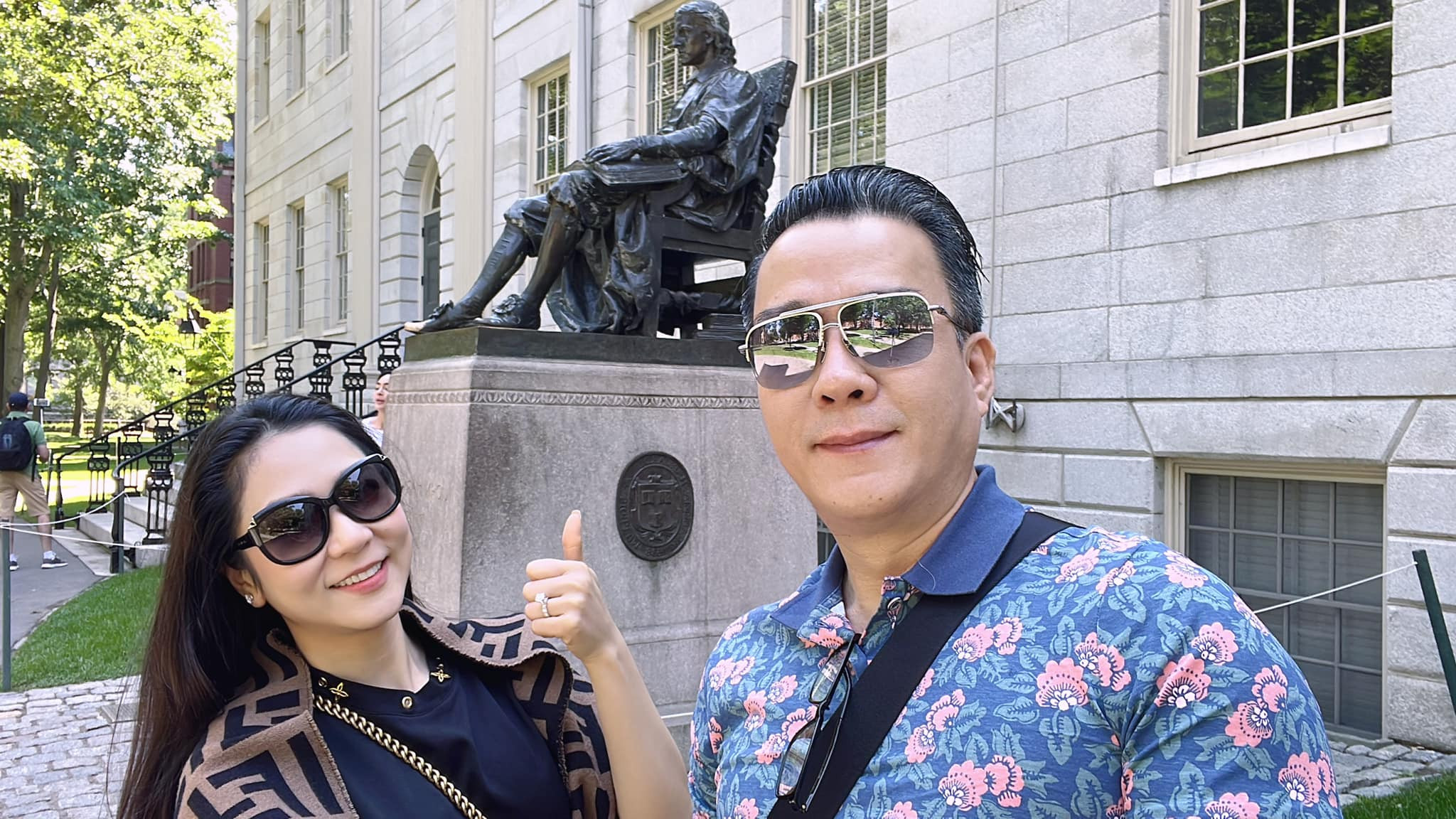 Người chăm chỉ chia sẻ những hình ảnh ngọt ngào của cả hai là doanh nhân Thắng Ngô. Anh thậm chí còn đăng ảnh khóa môi vợ ngay giữa chốn đông người khi cả hai đi du lịch.