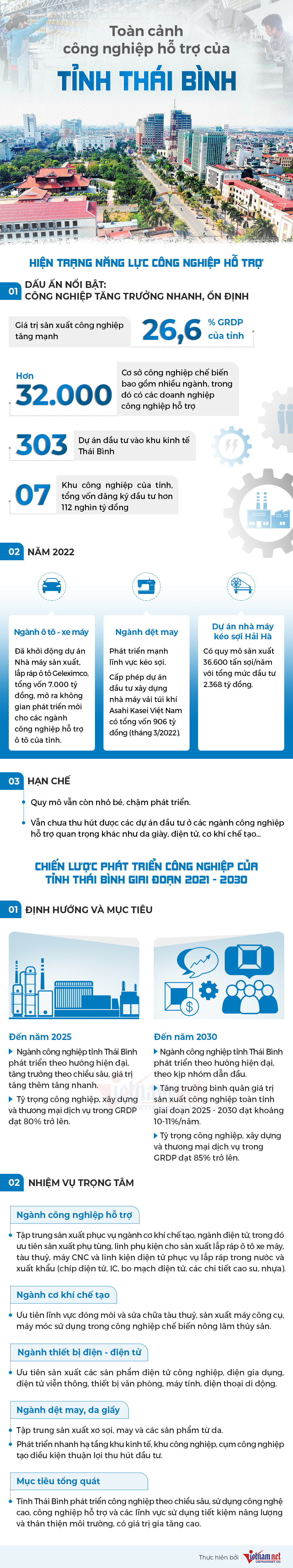Thái Bình đang đặt mục tiêu đến năm 2025 sẽ là tỉnh có ngành công nghiệp phát triển theo hướng hiện đại. Công nghiệp hỗ trợ của tỉnh sẽ tham gia quan trọng trong chuỗi cung ứng toàn cầu của các tập đoàn đa quốc gia lớn trên thế giới.