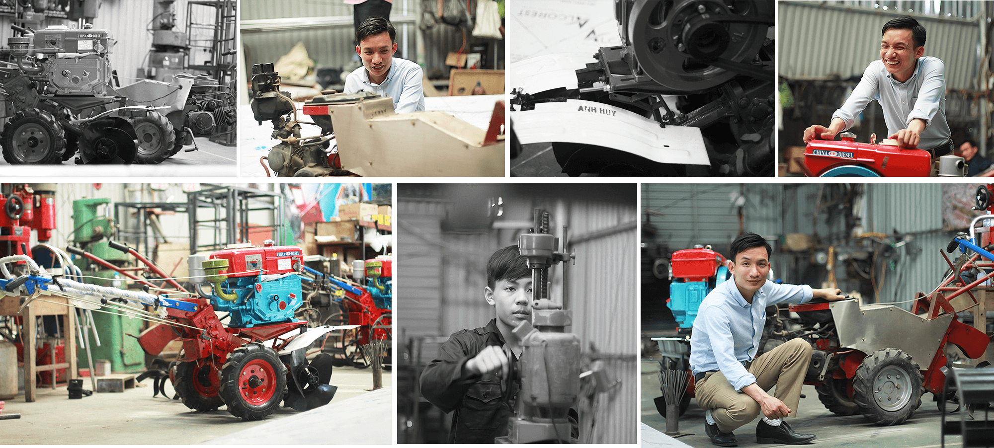 Câu chuyện về anh nông dân trẻ sáng chế máy nông nghiệp đa chức năng bắt đầu từ năm 2005. Hồi đó phần vì đam mê, phần vì cuộc sống từ nhỏ đã gắn với nông thôn, ruộng đồng nên anh chỉ mong muốn làm ra sản phẩm giúp ích cho chính mình, gia đình mình và những người xung quanh. Chiếc máy đầu tiên với 2 chức năng làm đất và bơm nước do chính Huy sử dụng trên mảnh ruộng của gia đình sau đó bán lại cho người hàng xóm với giá 1,6 triệu đồng.