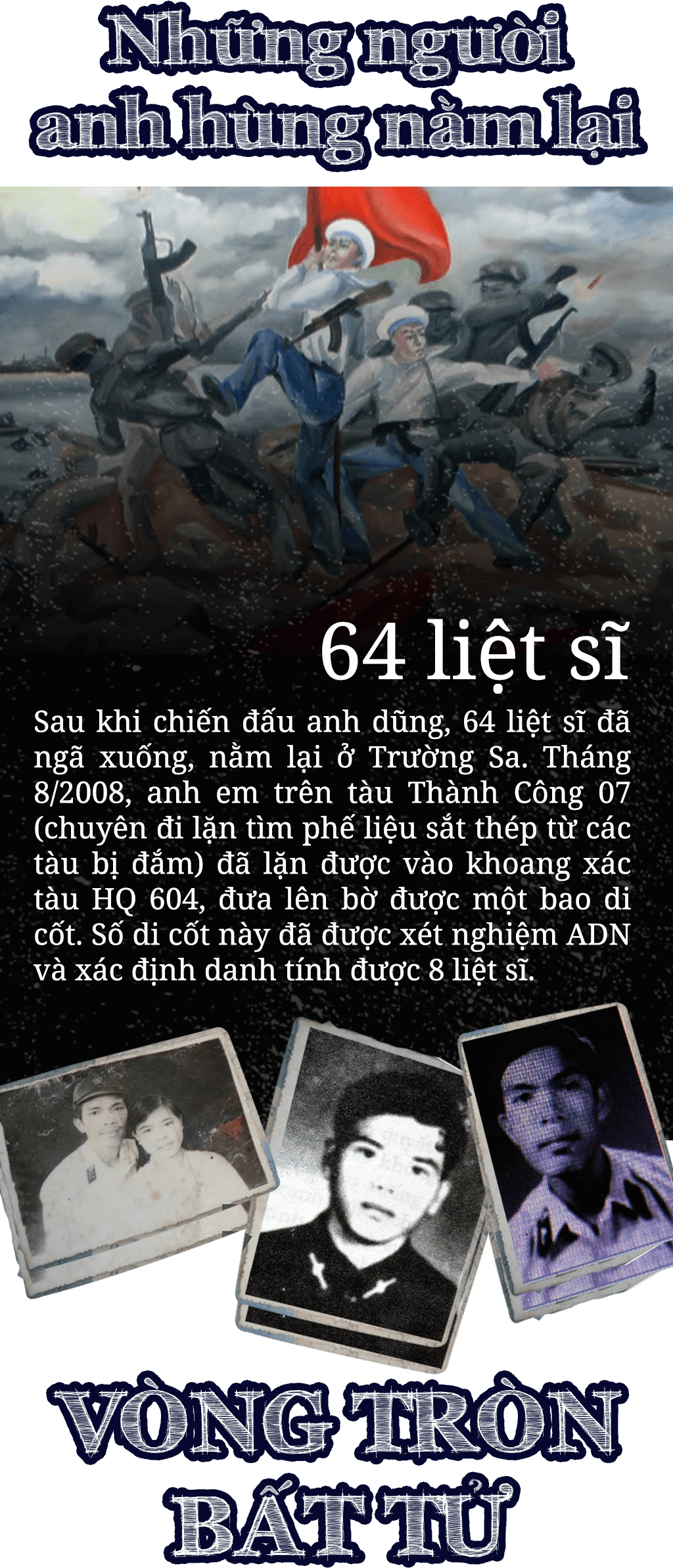 Sau khi anh Phương bị bắn, lính TQ định cướp lá cờ, nhưng hạ sĩ Nguyễn Văn Lanh giằng lại được. Lính TQ đâm anh từ phía sau rồi bắn thẳng vào anh bằng AK khiến anh bị thương. Tiếp đó, lính đổ bộ TQ lùi ra xa để đại liên, pháo 37 li từ tàu chiến của chúng bắn thẳng vào các chiến sĩ Việt Nam vẫn đang quyết tử bám trụ giữ đảo. Hình ảnh bi tráng của những chiến sĩ hải quân hy sinh ở Trường Sa năm 1988 sau này được tôn vinh là “vòng tròn bất tử”.