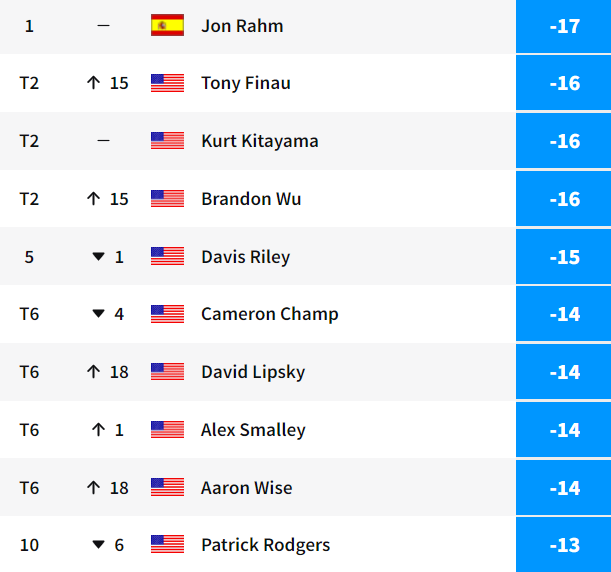 Thành tích các ngày thi đấu của Rahm lần lượt 64, 66, 68 và 69 gậy. Anh đăng quang với tổng điểm gậy -17, thắng 1 gậy so với các đối thủ Brandon Wu, Tony Finau và Kurt Kitayama.