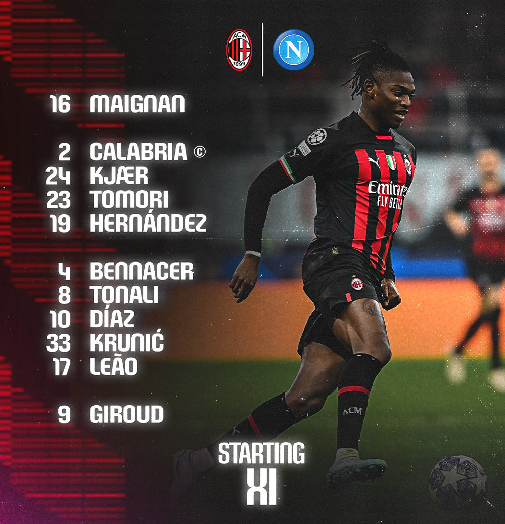 Milan (4-3-1-2): Maignan; Calabria, Tomori, Kjaer, Theo Hernandez; Tonali, Krunic, Bennacer; Diaz; Leao, Giroud.