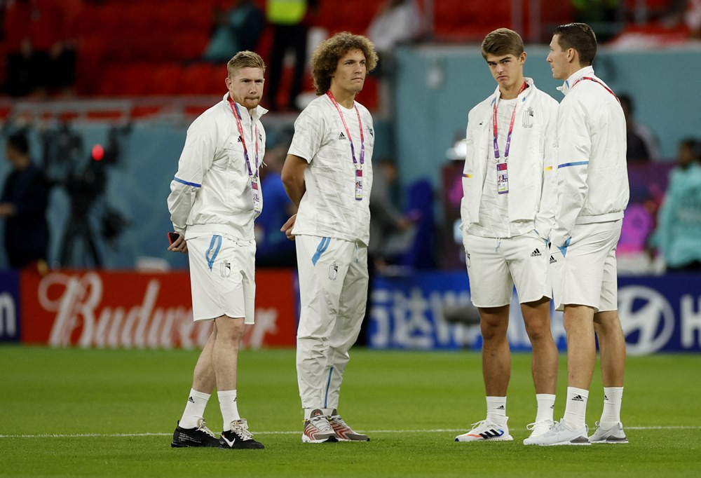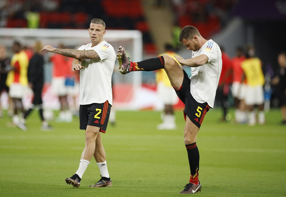 Các cầu thủ Bỉ có mặt tại sân Ahmed bin Ali để chuẩn bị cho trận đấu