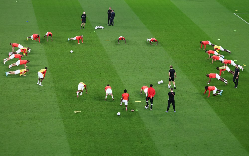 Cầu thủ hai đội khởi động trước trận đấu