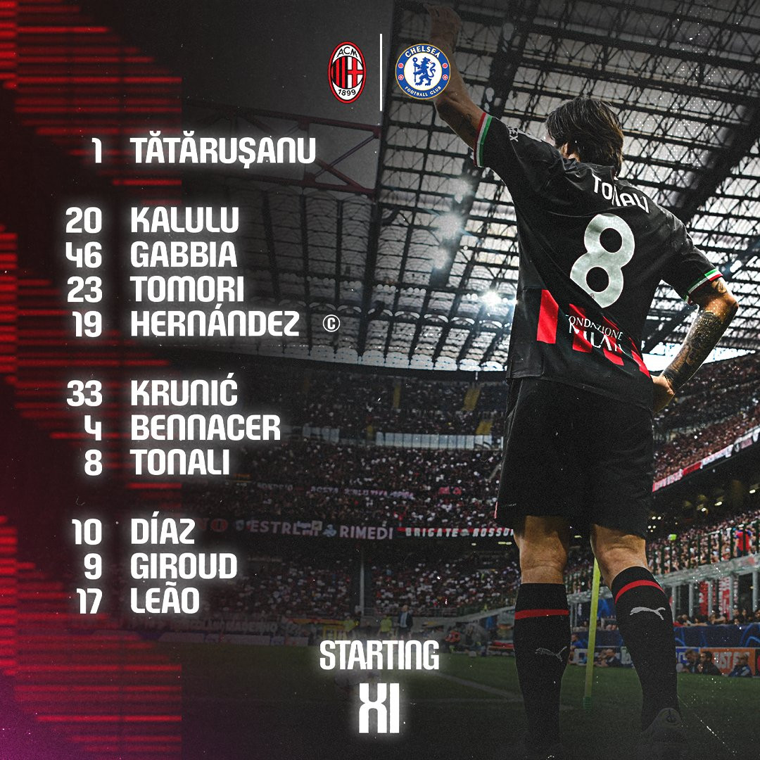 Milan (4-2-3-1): Tatarusanu; Gabbia, Kalulu, Tomori, Hernandez; Tonali, Bennacer; Krunic, Brahim Diaz, Rafael Leao; Giroud.