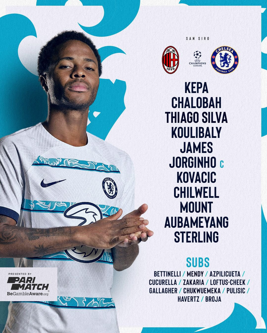 Chelsea (3-4-2-1): Kepa; Chalobah, Thiago Silva, Koulibaly; James, Jorginho, Kovacic, Chilwell; Sterling, Mount; Aubameyang.