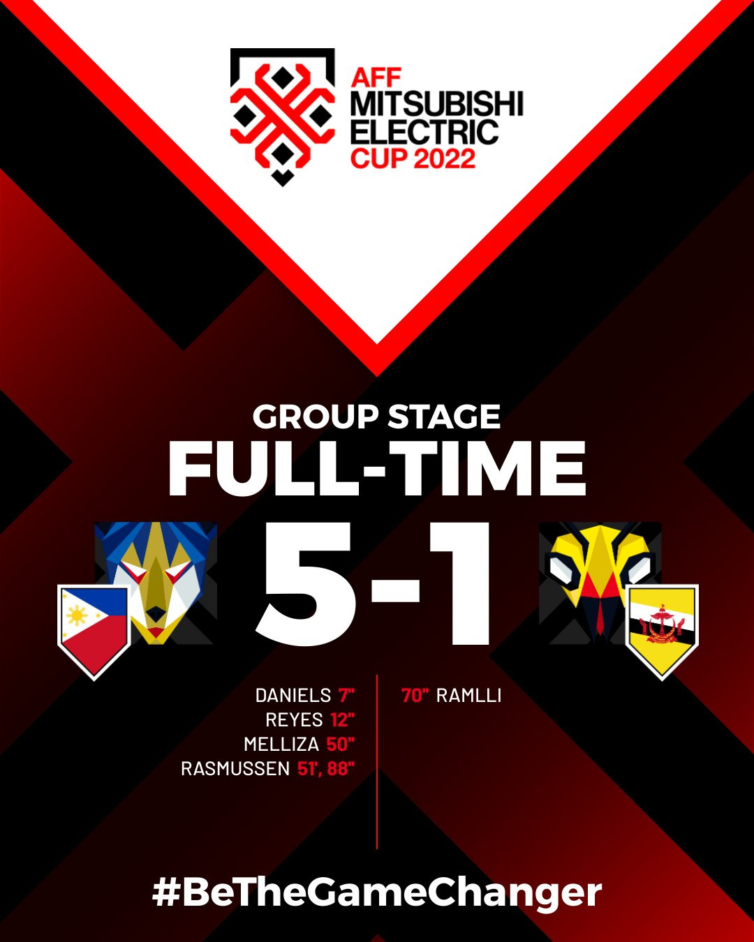 Philippines: Daniels 7', Reyes 12', Melliza 49', Rasmussen 52', 87'