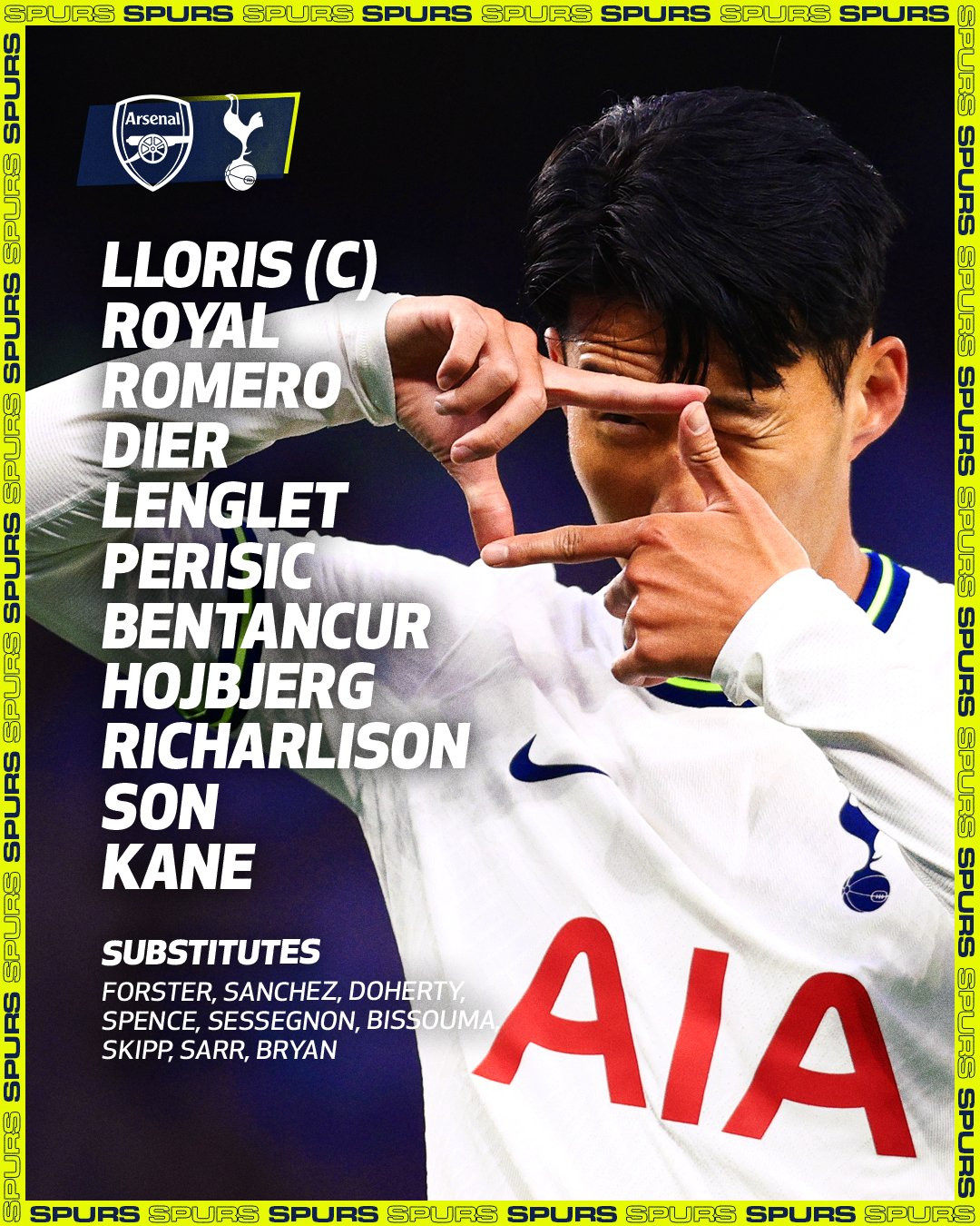 Tottenham: Lloris; Romero, Dier, Lenglet; Perisic, Bentancur, Hojbjerg, Royal; Richarlison, Kane, Son.