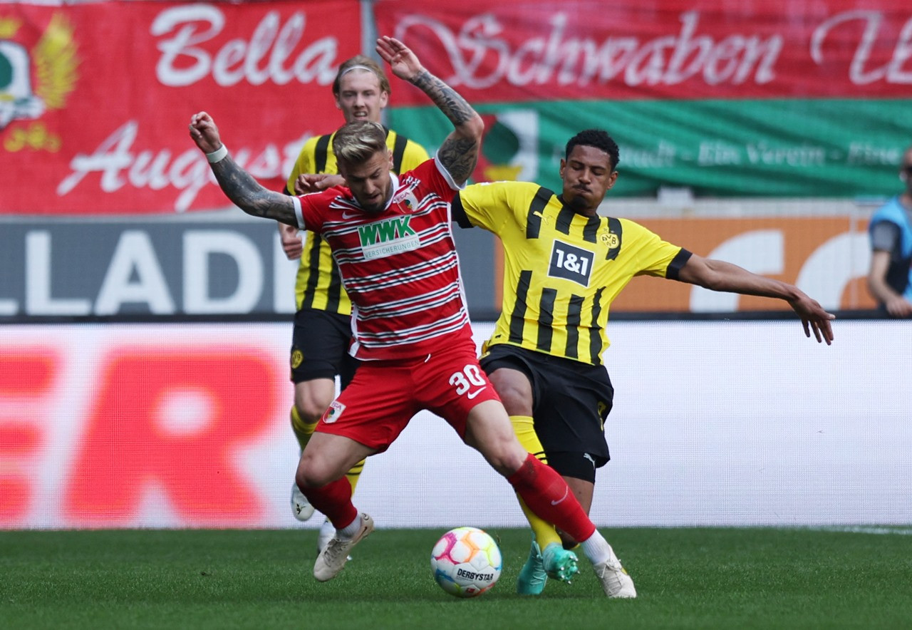 Felix Uduokhai bên phía Augsburg bị trọng tài truất quyền thi đấu khi kéo người đối với Donyell Malen, trong tình thế có thế dẫn đến bàn thắng cho Dortmund.