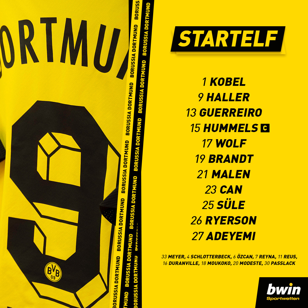 Dortmund (4-3-3): Kobel; Marius Wolf, Niklas Sule, Hummels, Ryerson, Donyell Malen, Julian Brandt, Emre Can, Guerreiro, Adeyemi, Sebastian Haller