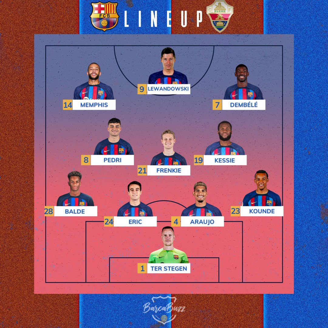Barca (4-3-3): Ter Stegen; Kounde, Araujo, Eric Garcia, Balde; Kessie, De Jong, Pedri; Ousmane Dembele, Lewandowski, Memphis.