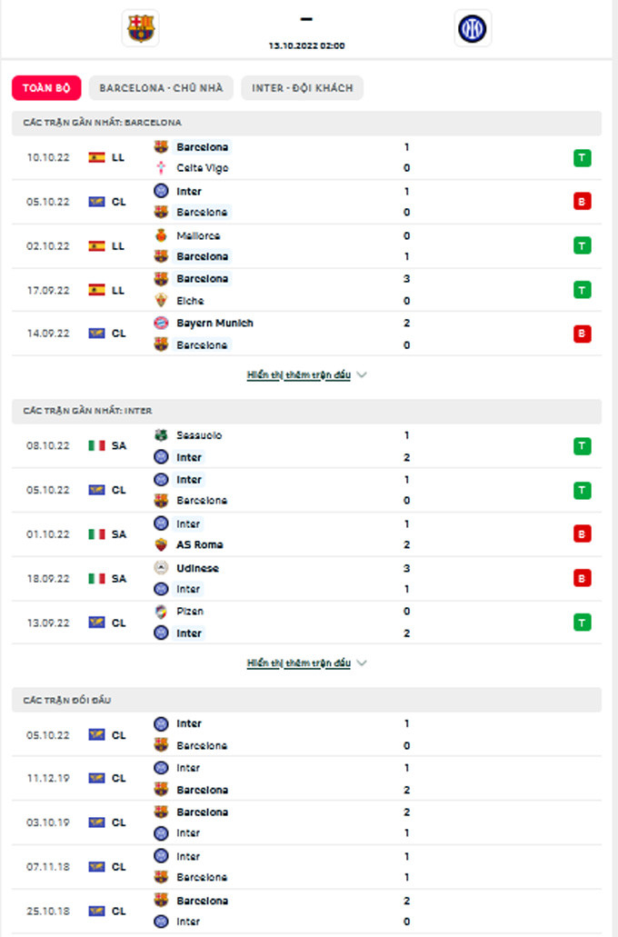 5 trận trận gần nhất tại Champions League của Inter có dưới 2,5 bàn được ghi.