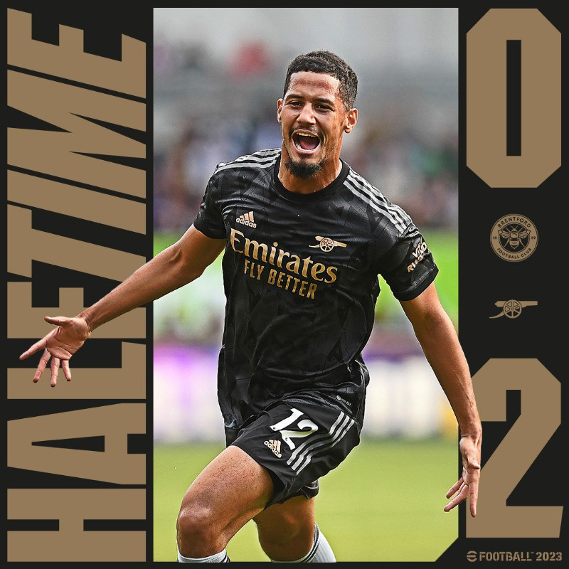 Bàn thắng (1-0, Saliba): Từ quả phạt góc bên cánh phải của Saka, Saliba đánh đầu hiểm hóc đập cột dọc bóng đi qua vạch vội, mở tỷ số cho đội khách.