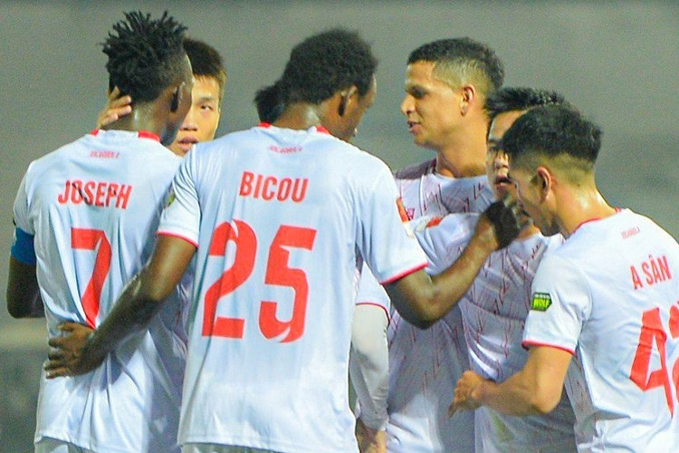 Sân 19-8 Nha Trang: Mặt sân trơn trượt khiến Việt Anh bị ngã trong pha cản phá, tạo cơ hội cho Khánh Hòa. Đường chuyền loại bỏ Filip Nguyễn để Leazad Watz dễ dàng đệm bóng vào lưới trống.