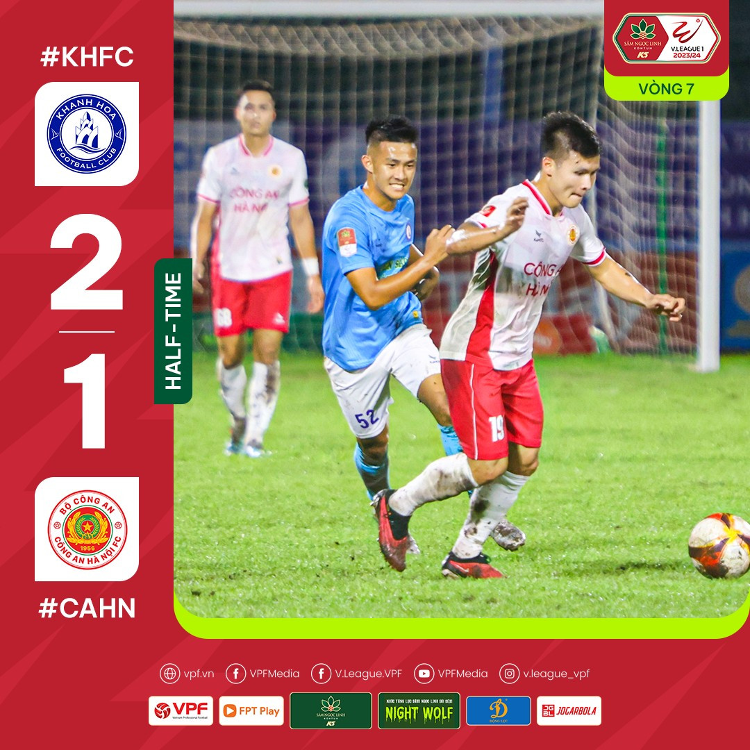Hiệp một khép lại với việc Khánh Hòa dẫn ngược CA Hà Nội 2-1, trong khi Bình Dương và Thanh Hóa cầm chân nhau không bàn thắng.