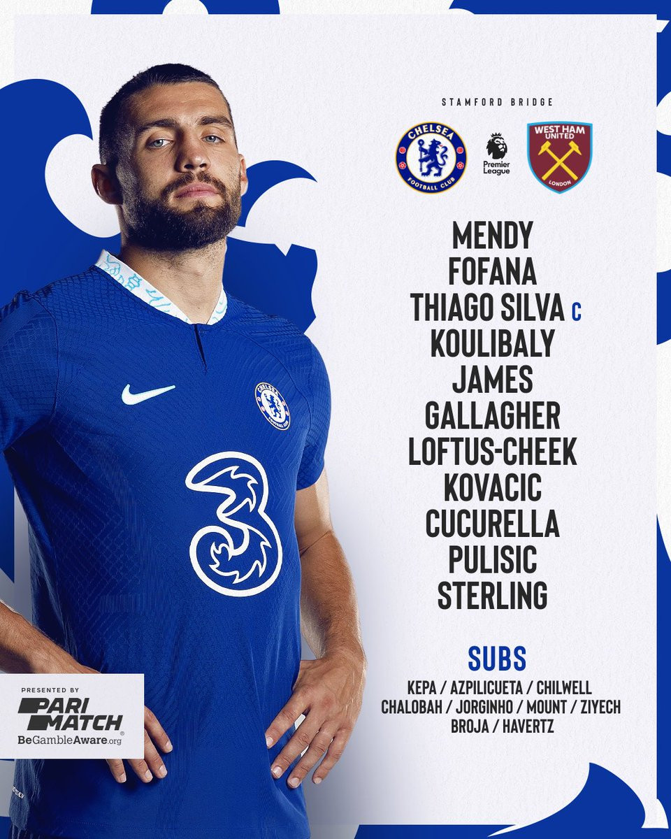 Chelsea: Mendy; Wesley Fofana, Thiago Silva, Koulibaly; Reece James, Loftus-Cheek, Gallagher, Kovacic, Cucurella; Sterling, Pulisic.