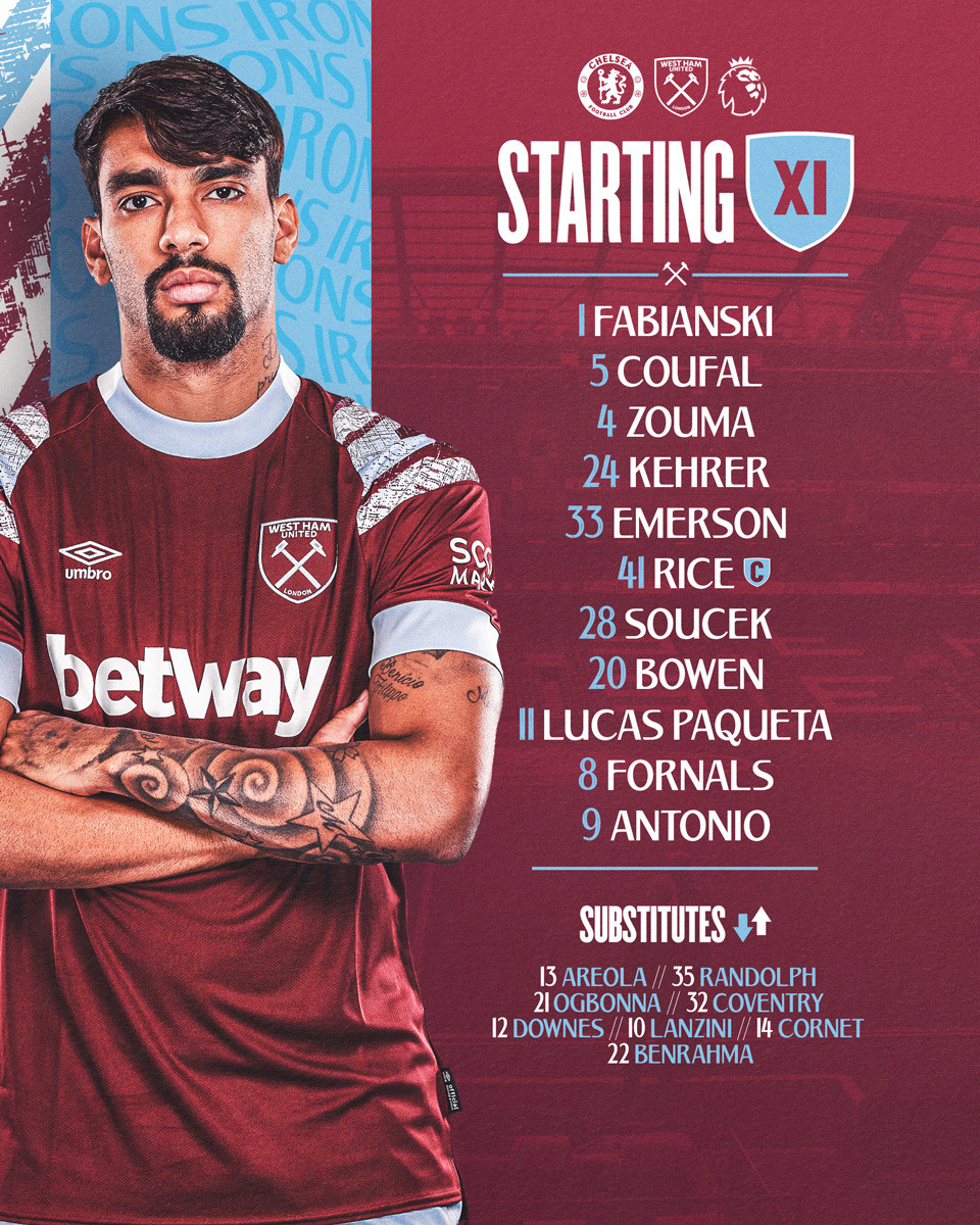 West Ham: Fabianski; Coufal, Kehrer, Kurt Zouma, Emerson; Soucek, Declan Rice; Bowen, Lucas Paqueta, Fornals; Antonio.