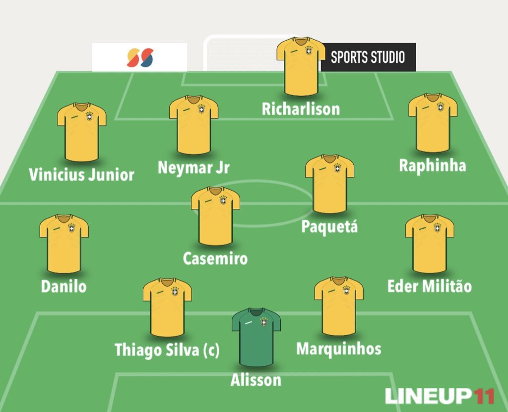 Brazil: Alisson; Militao (Alex Sandro 106'), Thiago Silva, Marquinhos, Danilo; Casemiro, Paqueta (Fred 106'); Raphinha (Antony 56'), Neymar, Vinicius Jr (Rodrygo 63'); Richarlison (Pedro 84').