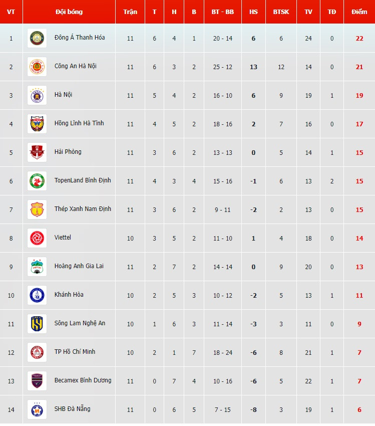 Bảng xếp hạng V-League 2023