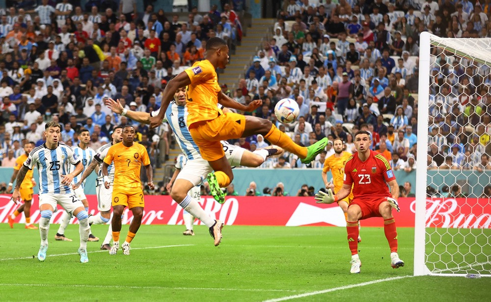 Hà Lan có pha tấn công sắc nét, may cho Argentina khi Cristian Romero kịp thời tì đè vừa đủ khiến Blind không thể đánh đầu cận thành, sau nỗ lực cứu bóng của Denzel Dumfries.