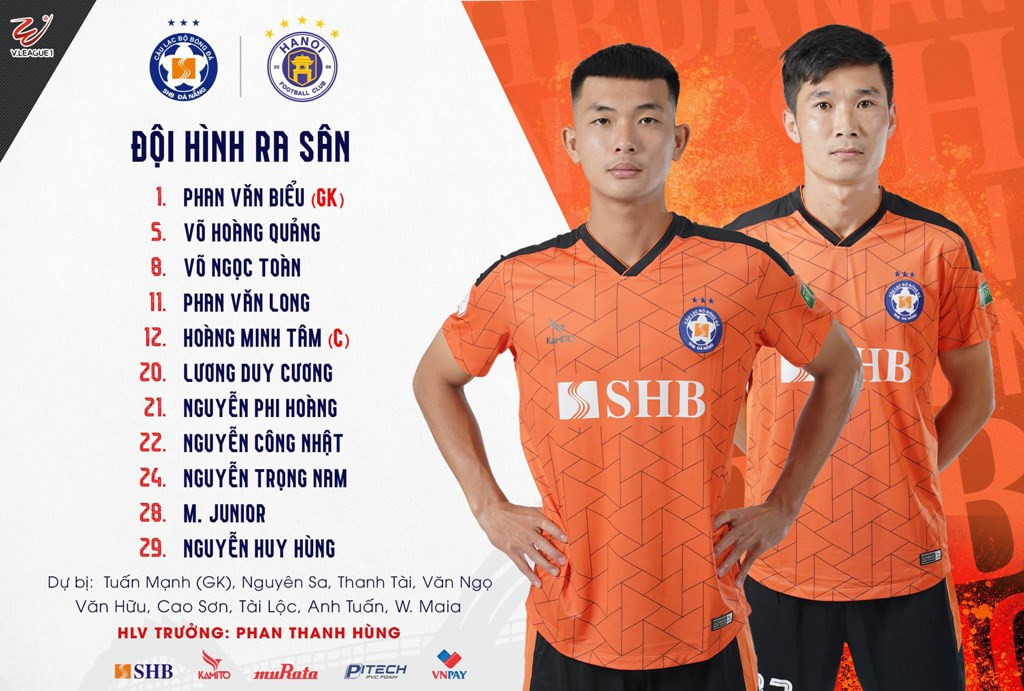 SHB Đà Nẵng: Văn Biểu, Hoàng Quảng, Nguyên Sa, Moreira, Anh Tuấn, Văn Long, Duy Cương, Công Nhật, Phi Hoàng, Minh Tâm, Junior.
