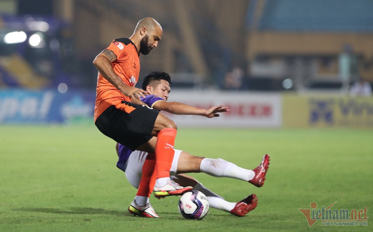 Hậu vệ Đà Nẵng phá hụt bóng tạo cơ hội để Lucao thoát xuống dứt điểm đưa bóng đi không trúng đích.