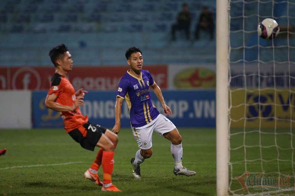 Các cầu thủ chủ nhà Hà Nội đang tạo được sức ép đáng kể lên phần sân của đội bóng sông Hàn.