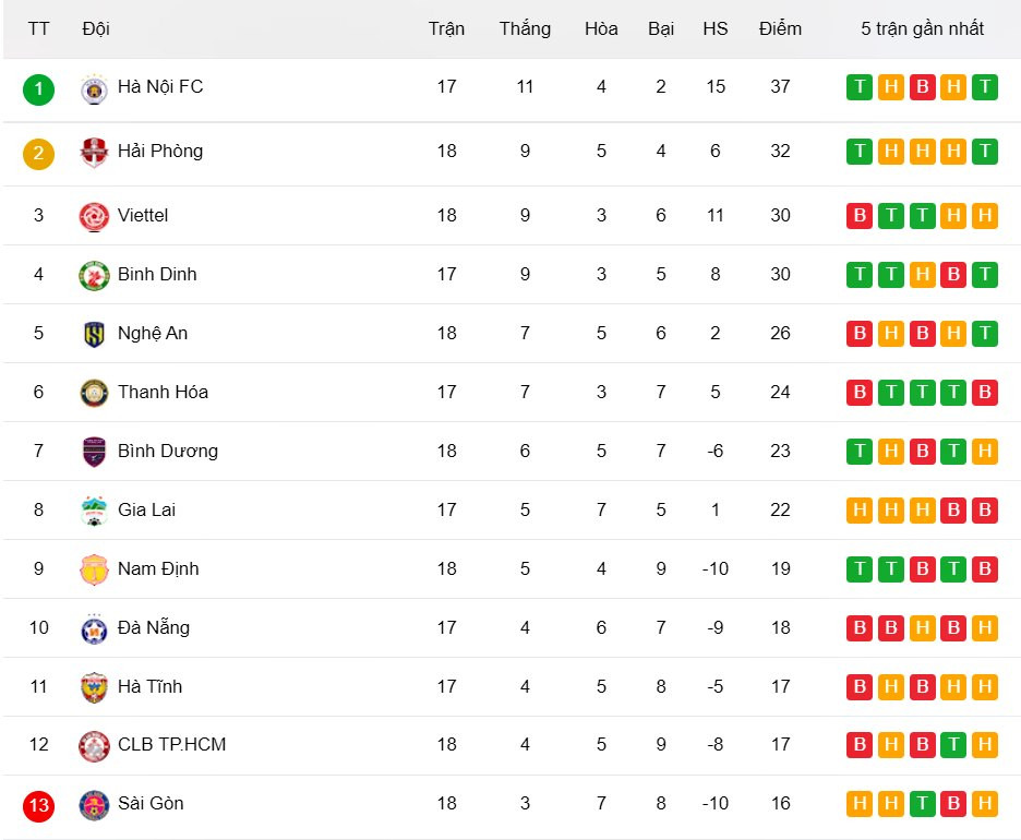 Trận đấu kết thúc với chiến thắng đậm đà 5-2 dành cho Hà Nội trước Nam Định. Kết quả này giúp đội bóng Thủ đô xây chắc ngôi đầu với 37 điểm, hơn đội xếp thứ 2 là Hải Phòng 5 điểm, trong khi vẫn thi đấu ít hơn 1 trận.