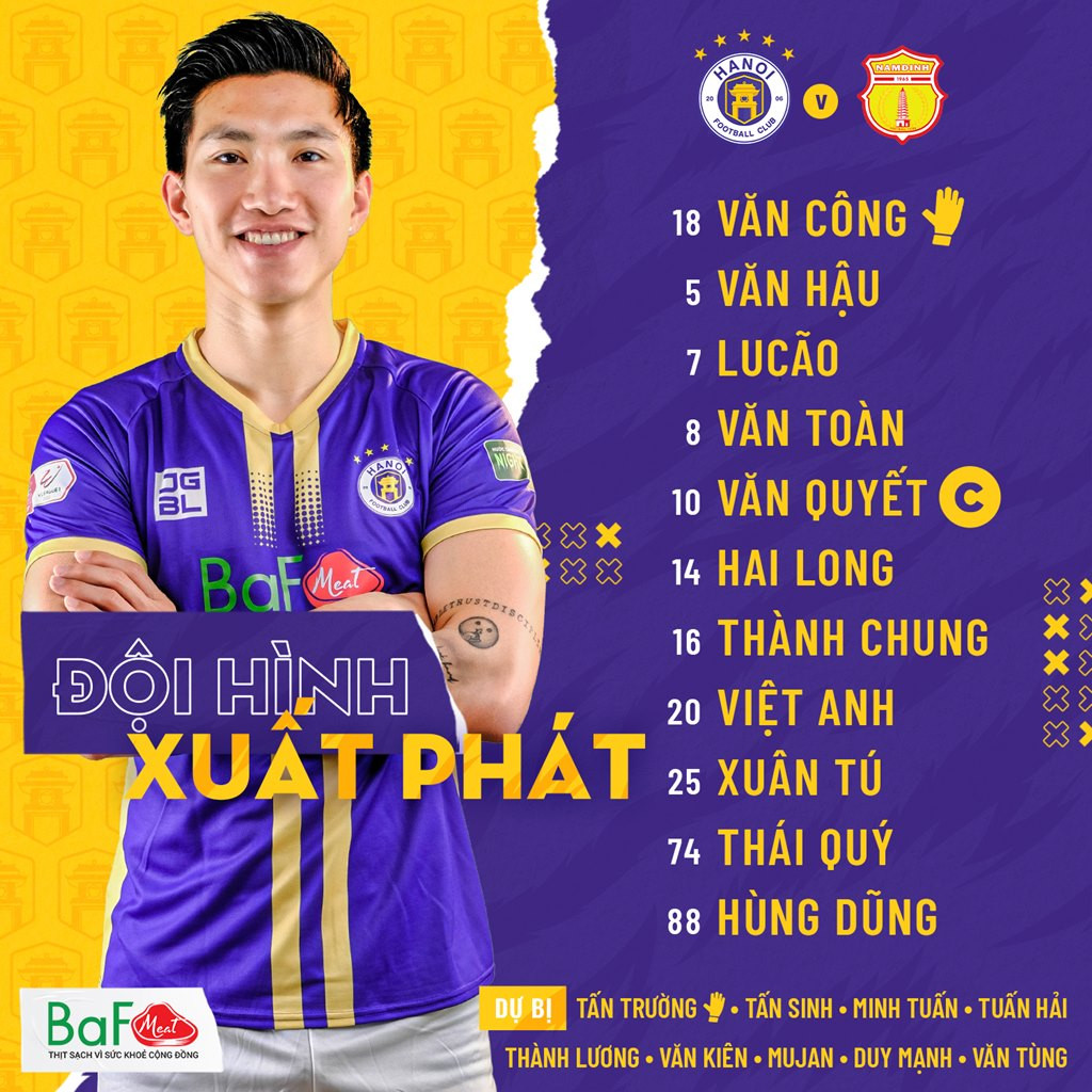 Đội hình xuất phát Hà Nội vs Nam Định