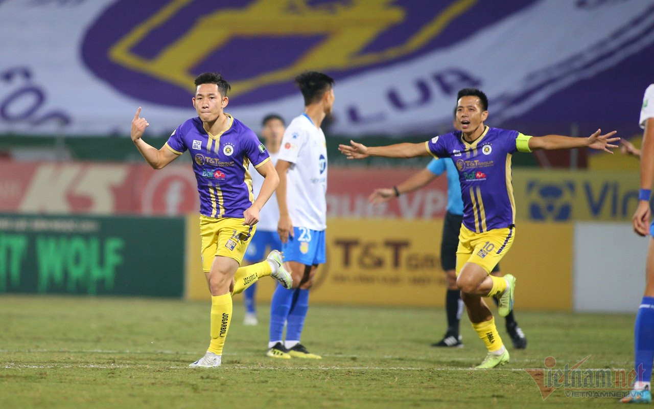 BÀN THẮNG! Hà Nội 2-0 Nam Định (Đoàn Văn Hậu): Đội trưởng Văn Quyết treo bóng từ tình huống cố định để Văn Hậu thoát xuống đánh đầu tung lưới Nam Định lần thứ 2.