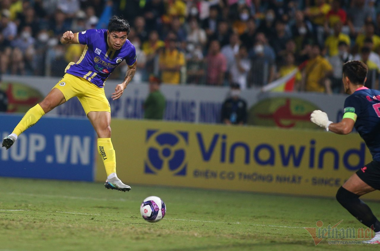 Ngay trong đợt lên bóng đầu tiên, Văn Hiếu xâm nhập vòng cấm với cơ hội ngon ăn. Cầu thủ mang áo số 23 của Nam Định quyết định xoay người dứt điểm ở tư thế khó thay vì chuyền bóng cho Mai Xuân Quyết ở vị trí khá trống trải.