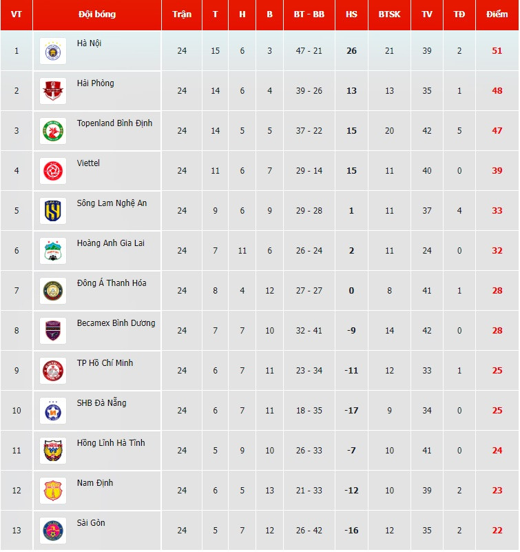 | Bảng xếp hạng V-League 2022 | ||||||||