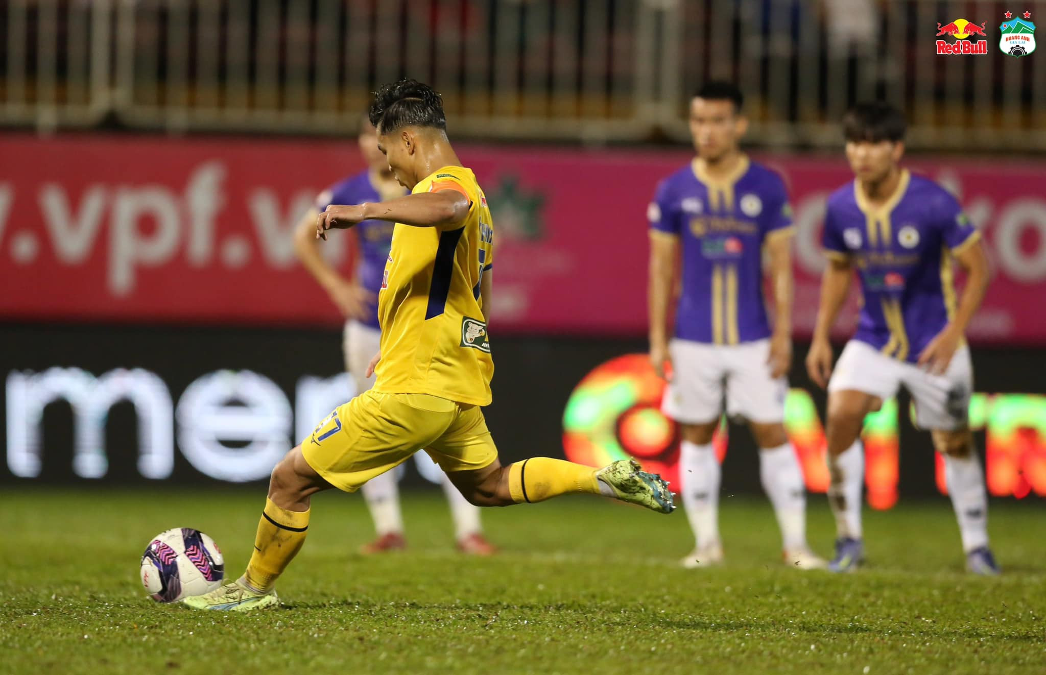 Văn Vĩ bên phía Hà Nội bị ngã trong vòng cấm nhưng không có lỗi của hậu vệ HAGL.