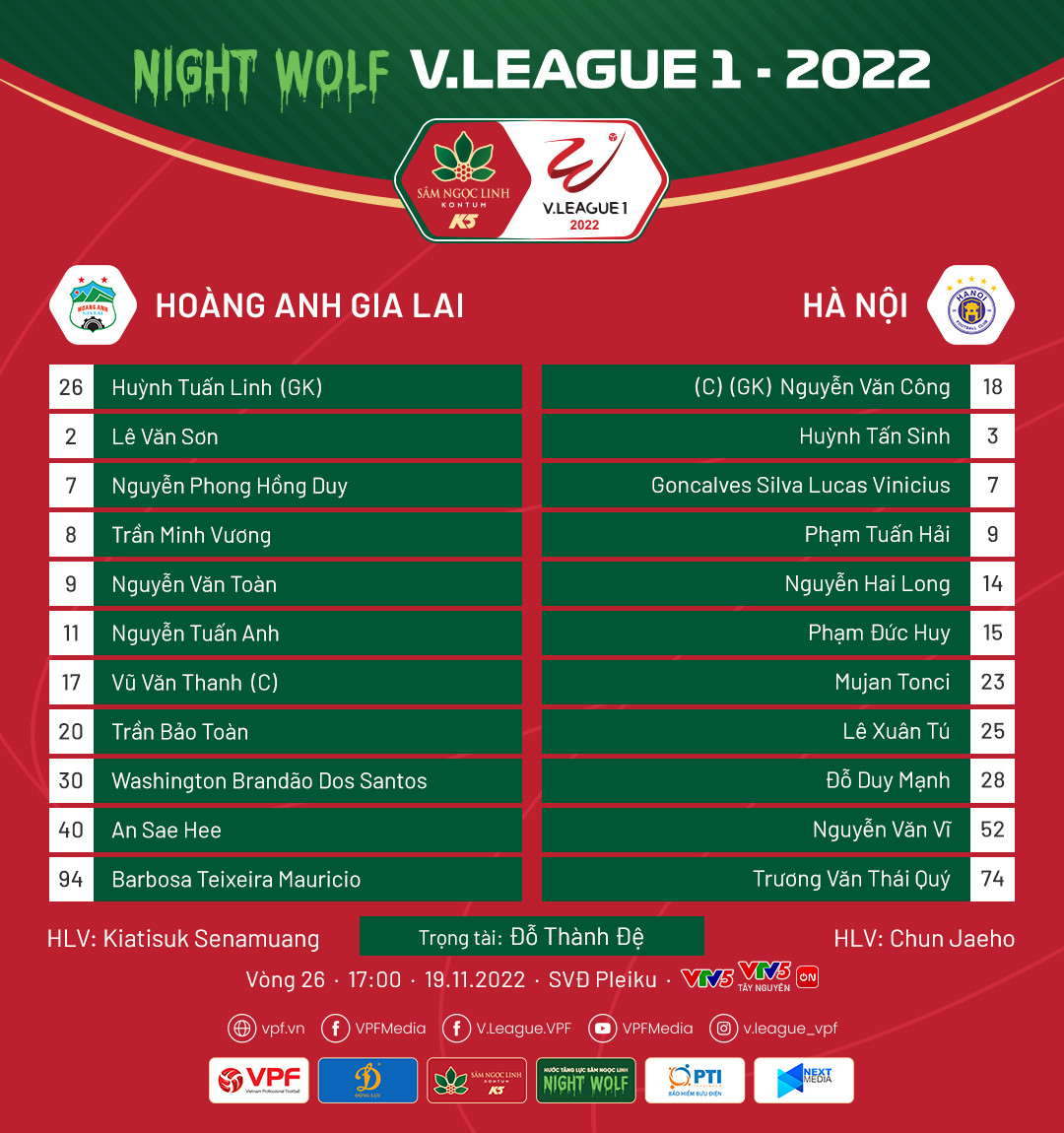 Hà Nội: Văn Công (thủ môn), Văn Vĩ, Duy Mạnh, Tấn Sinh, Thái Quý, Hai Long, Đức Huy, Tuấn Hải, Xuân Tú, Mujan Tonci, Lucao