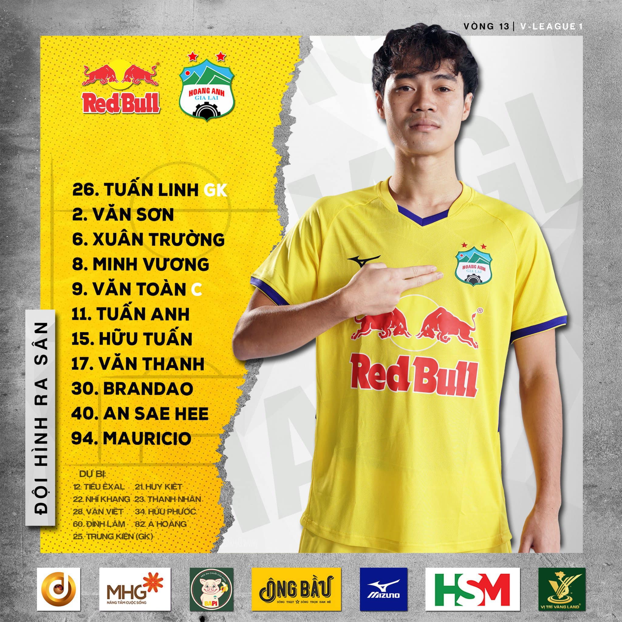 HAGL: Tuấn Linh, Văn Sơn, Maurico, An Sae Hee, Hữu Tuấn, Văn Thanh, Xuân Trường, Tuấn Anh, Văn Toàn, Minh Vương, Brandao.