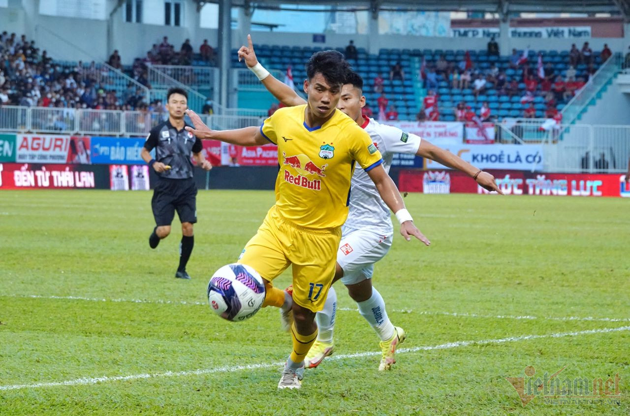 Đầu hiệp hai, HLV Kiatisuk kéo Văn Thanh sang cánh phải đúng sở trường của cầu thủ quê Hải Dương. HAGL vẫn đang bế tắc trong việc tìm kiếm bàn thắng quân bình tỷ số.