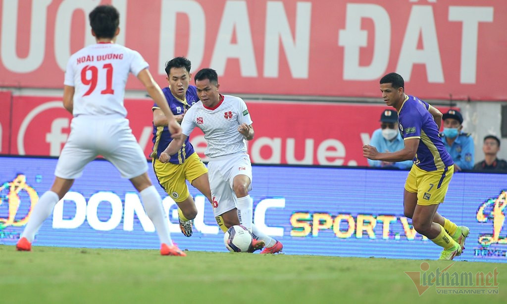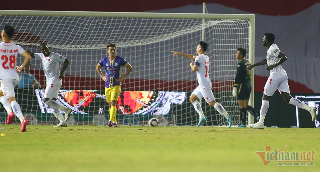 Rimario sút tung lưới Hà Nội tuy nhiên cựu tiền đạo HAGL, Thanh Hóa đã ở vào thế việt vị nên bàn thắng không được tính.