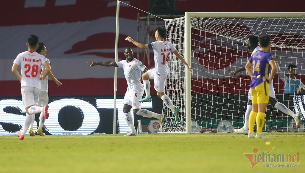 BÀN THẮNG! Hải Phòng 2-0 Hà Nội (Văn Minh): Thủ môn Văn Công xử lý lóng ngóng để mất bóng vào chân Văn Minh. Cầu thủ của Hải Phòng dễ dàng dứt điểm vào lưới trống, nâng tỉ số lên 2-0 cho Hải Phòng.