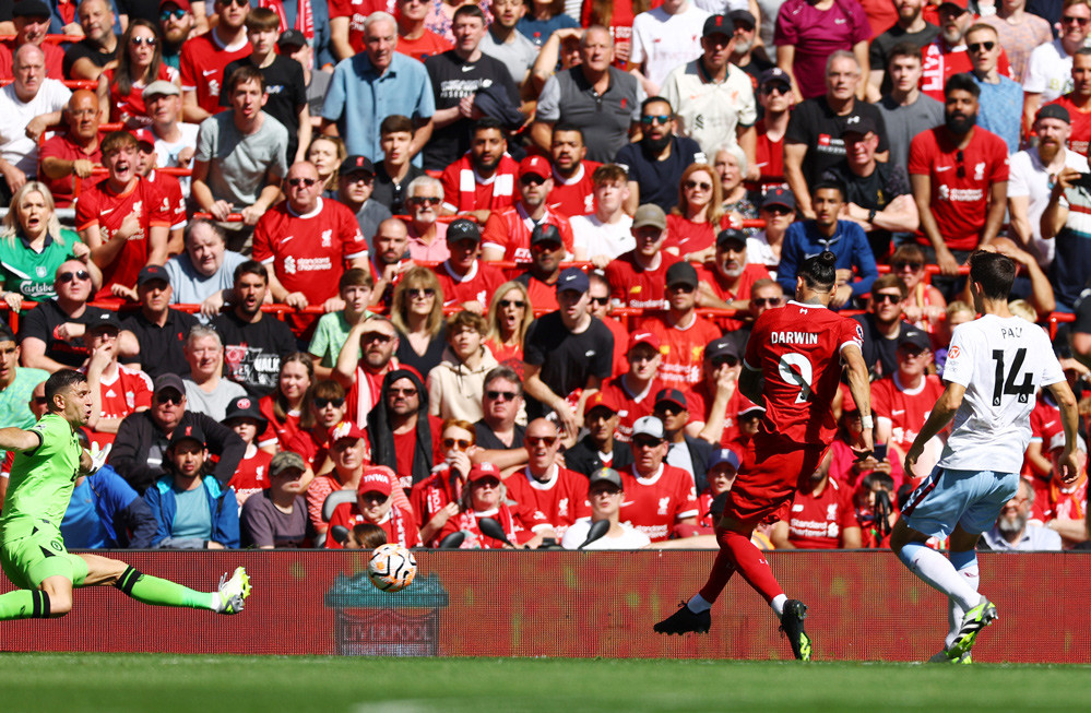 Ở tình huống phản công tiếp theo, lại là Salah kiến tạo cho Nunez dứt điểm trúng xà ngang ở góc hẹp.