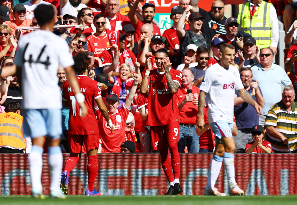 Bàn thắng (3-0, Mohamed Salah): Bắt nguồn từ quả phạt góc, Darwin Nunez đánh đầu chuyền cho Salah lẻn ra phía sau đệm cận thành tung lưới Aston Villa.