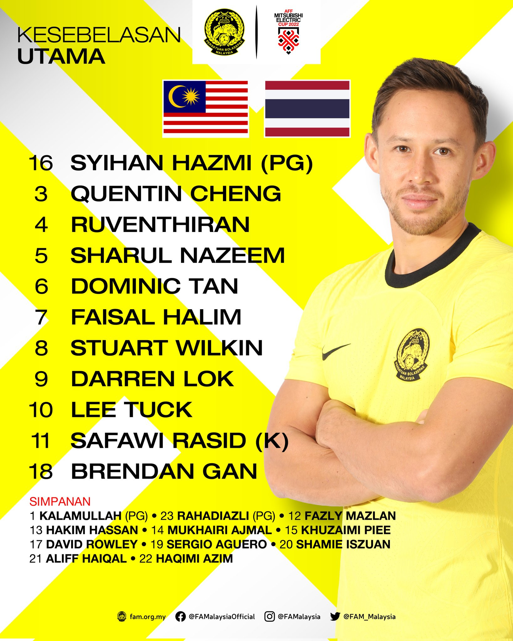 Malaysia: Hazmi, Dominic Tan, Ruventhiran, Sharul, Cheng, Faisal Halim, Brendan Gan, Stuart Wilkin, Darren Lok, Lee Tuck, Safawi Rasid.