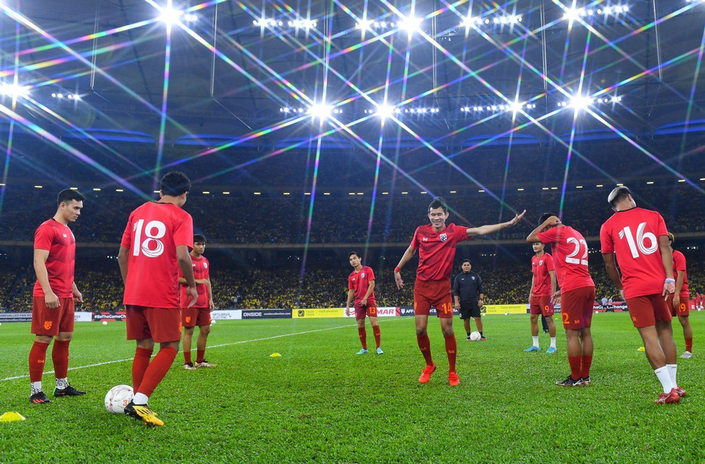 HLV Polking tăng cường hàng công với sự xuất hiện của Adisak. Thái Lan đang đẩy cao đội hình tấn công mạnh mẽ.