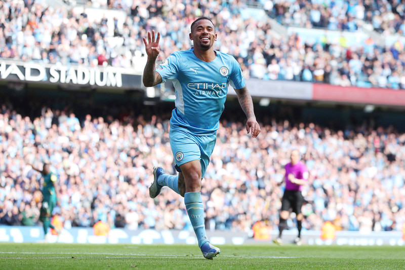 Bàn thắng: Jesus 4', 23', 49' (pen), 53', Rodri 34' - Kamara 28'