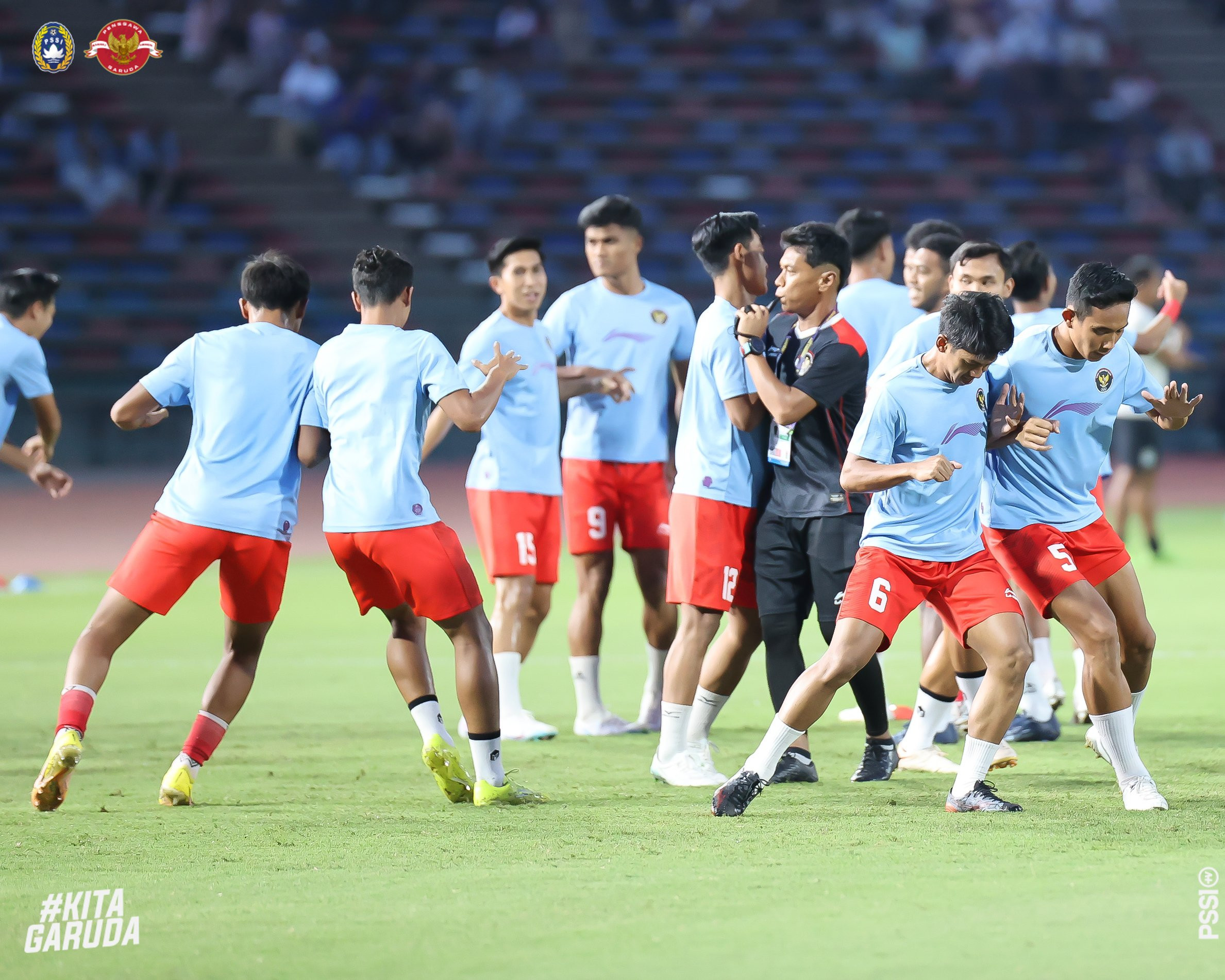 U22 Indonesia: Aidsatryo, Haykal, Ferarri, Rio, Beckham, Komang, Irfan, Titan, Taufany, Kelly, Witan.